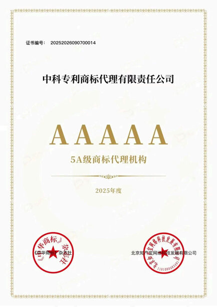 ★☆★ 中科専利商標 「2025年度5A級商標代理機構」に認定★☆★